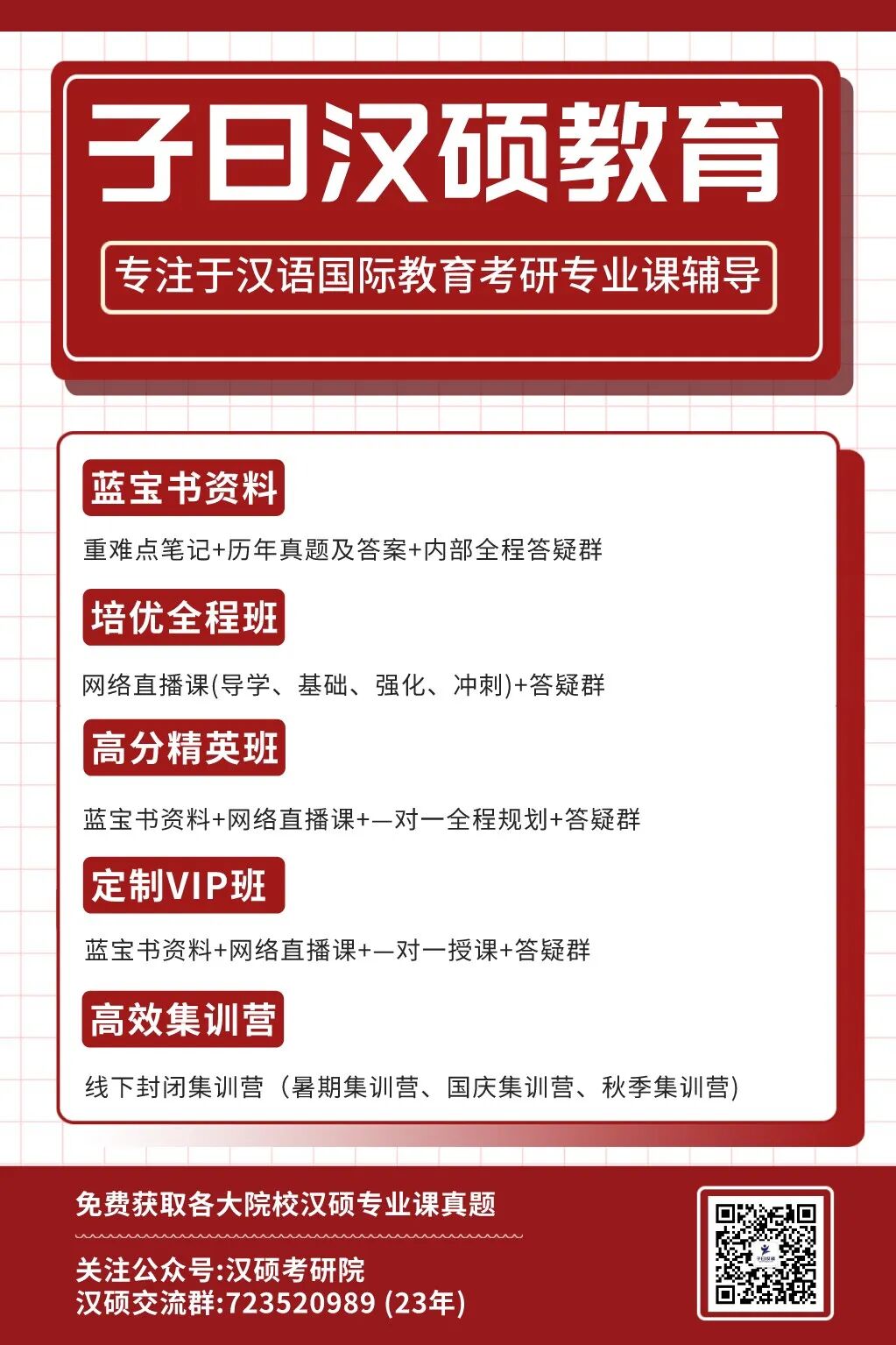 本群只对报汉语国际教育硕士研究生的考生开放,免费给大家提供历年真题和专业课复习