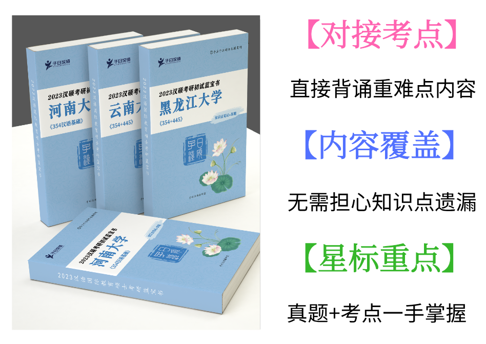 《子曰汉硕蓝宝书》均含汉硕历年真题&模拟题(附答案,我不会告诉你每年会考很多考真题),答案均是由高分学长学姐经过对真题深入研究,有针对性的制作而成,同时有助于同学们洞悉汉硕出题规律和方向。
